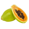 Lave e higienize muito bem todos os ingredientes e retire as sementes à papaia. Remova a casca às frutas como a papaia e às 2 rodelas de gengibre, mantendo apenas a casca do pepino.